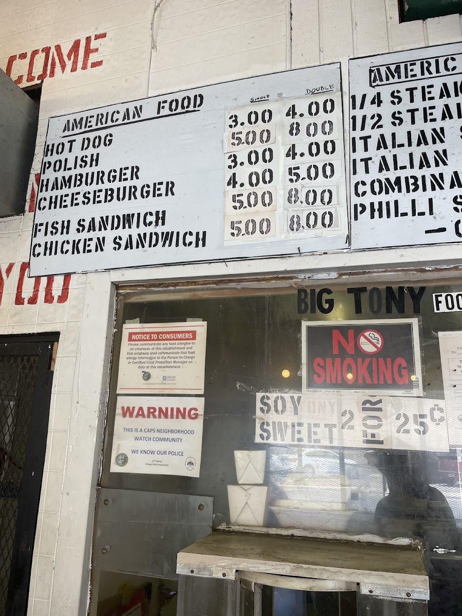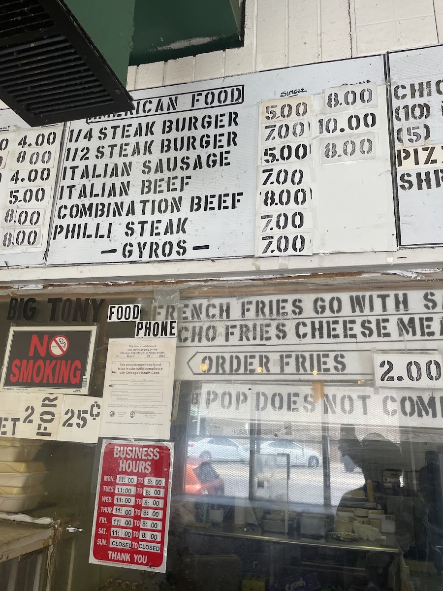 Introducing the menu for Big Tony Foods Inc, a beloved gem located at 5611 W Lake St, Chicago. This fast-food restaurant is celebrated for its diverse offerings that pay homage to American cuisine, featuring everything from classic hot dogs and burgers to premium fish sandwiches and chicken sandwiches. Yet, the real stars are the boldly flavored super tacos and the ample variety of steak sandwiches, all praised by loyal customers.